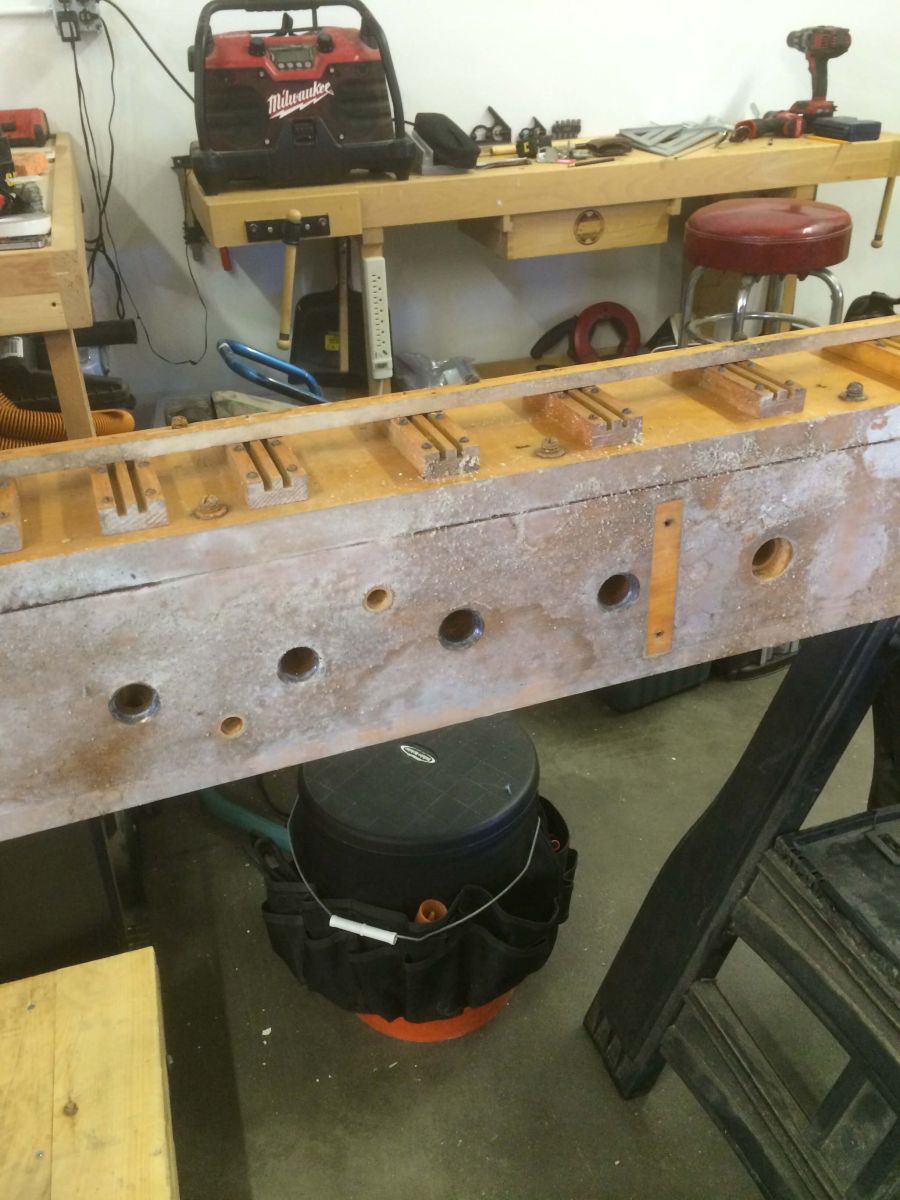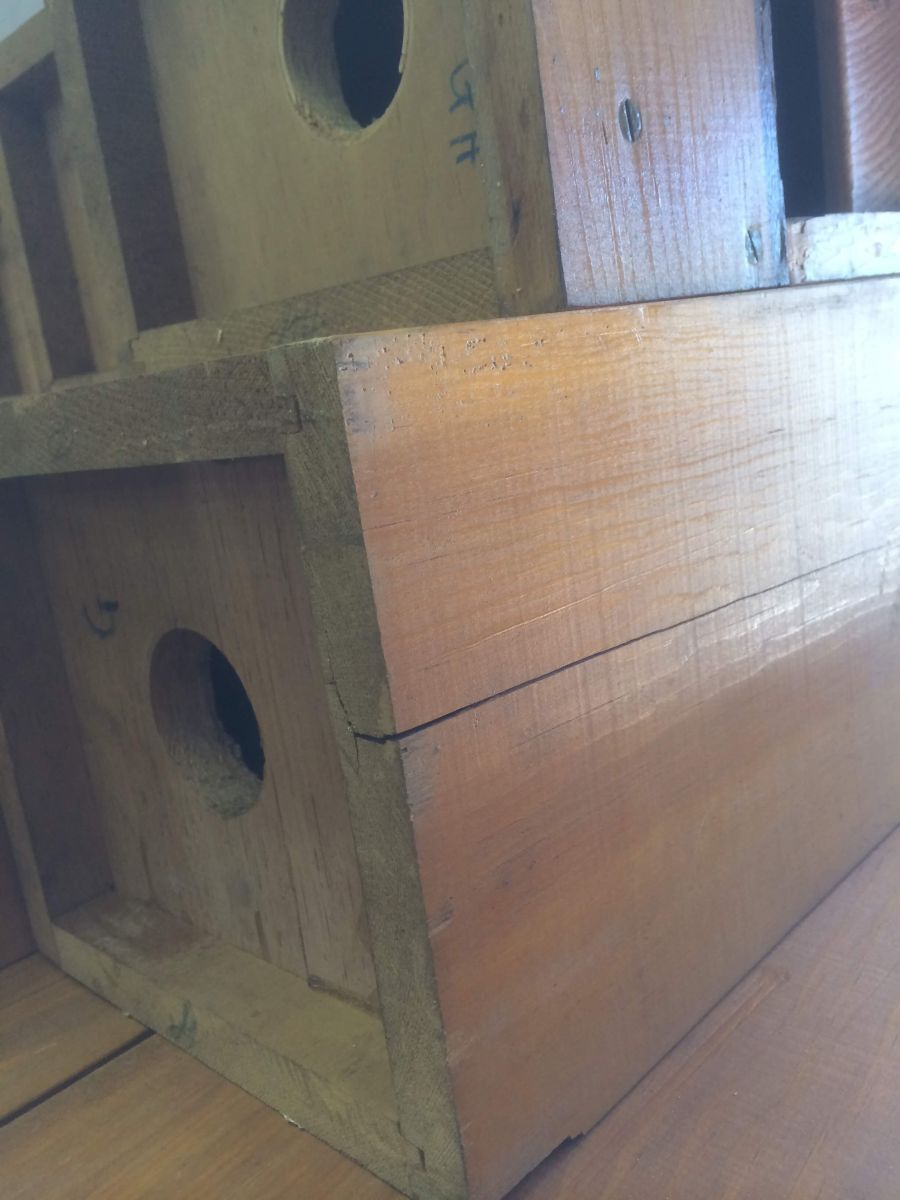 More of the wind chest mold. Water got to the inside as well, so we basically had to "start over" and go down to the wood and replace all damaged components, including valves and the leather that carries the valves inside.